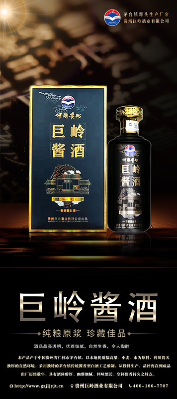 贵州巨岭酒业有限公司,座落于闻名世界的古镇,国酒之乡“茅台镇”。与“国酒茅台”共享得天独厚的气候、土壤、水源、以及微生物群等自然资源;《巨岭酒业》老作坊前身“巨岭烧坊”,经过多年的传承,秉承先辈们代代相传的古法酿造工艺,历经几代人的延续和酿酒发展,奠定了《巨岭酒业》发展的坚实基础。 作为贵州茅台镇本土规模企业,《巨岭酒业》拥有传统发酵窖池200余口,年产优质酱香白酒近2600多吨,储酒能力12000多吨;并配有3条现代化包装生产线;公司现有职工300多名,有酿酒师15人,技术人员22人,本科以上学历管理人员12人,大专学历工作人员78人,是茅台古镇酱酒传承的白酒知名企业。 《巨岭酒业》励精图治与精益求精的发展理念,已成长为行业认可、社会公认的“规模酿酒企业”,酒业协会副会长单位”和“爱心企业”。 公司现在拥有:《巨岭酱酒》,《岭台》,《玉岭烧坊》,《酒缘》《情满壶》等上百个品牌产品,公司注重品牌发展,以《巨岭酱酒》为品牌核心,以个性化定制和尊贵封藏为营销模式,制定出“一核两柱”的销售模式?!毒蘖虢淳啤纷魑放浦魈澹隼┱故谐〉呐磐废确妫季郑阆呓岷?,网状布局,包括《巨岭》系列产品.... |